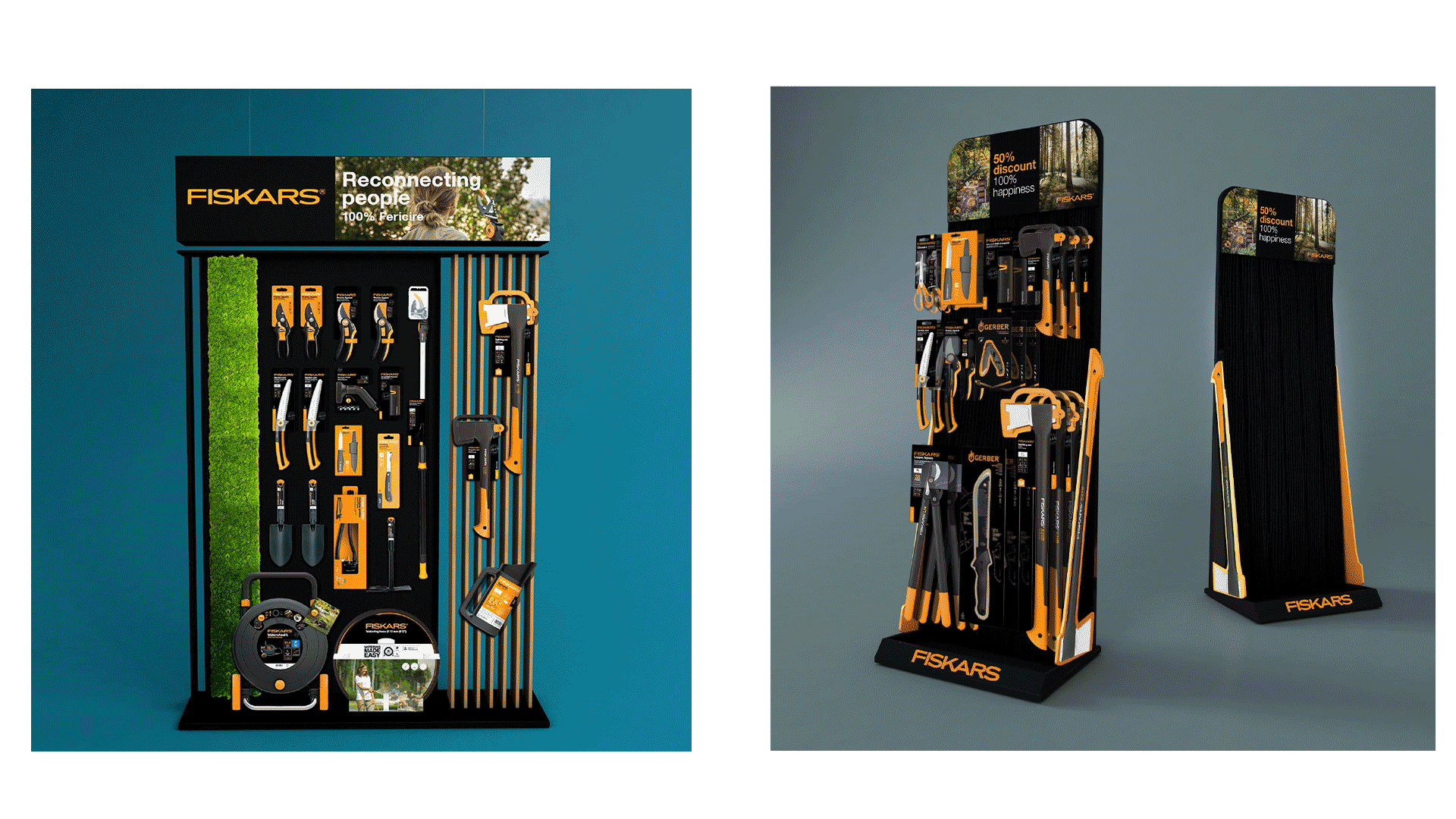 With each FISKARS Project, our resilience to challenges has also grown: whether we are talking about the display of a single product or an entire range, the pressure exerted by the history and global competition of the FISKARS brand has made us surpass ourselves every time. Indoor, outdoor, cardboard, metal, HDF or Plexiglas display systems, the campaigns have always knocked on our door and we have always responded, so we have become a trusted supplier for FISKARS in South-Eastern Europe.
